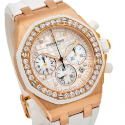 Women’s Diamond Watch Audemars Piguet Royal Oak Chronograph 37mm Silver Tone Dial