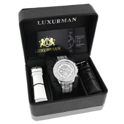 Large Diamond Watches For Men 0.12ct Luxurman Phantom White MOP