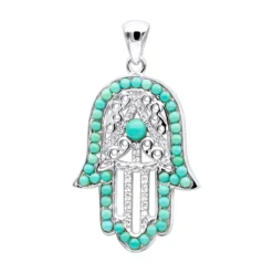 14K Yellow Gold Filigree Turquoise Diamond Hamsa Pendant 0.19ct