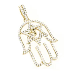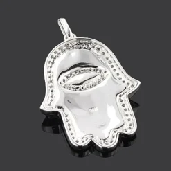 Small 14K White Gold Diamond Hamsa Hand Amulet Pendant 0.55ct