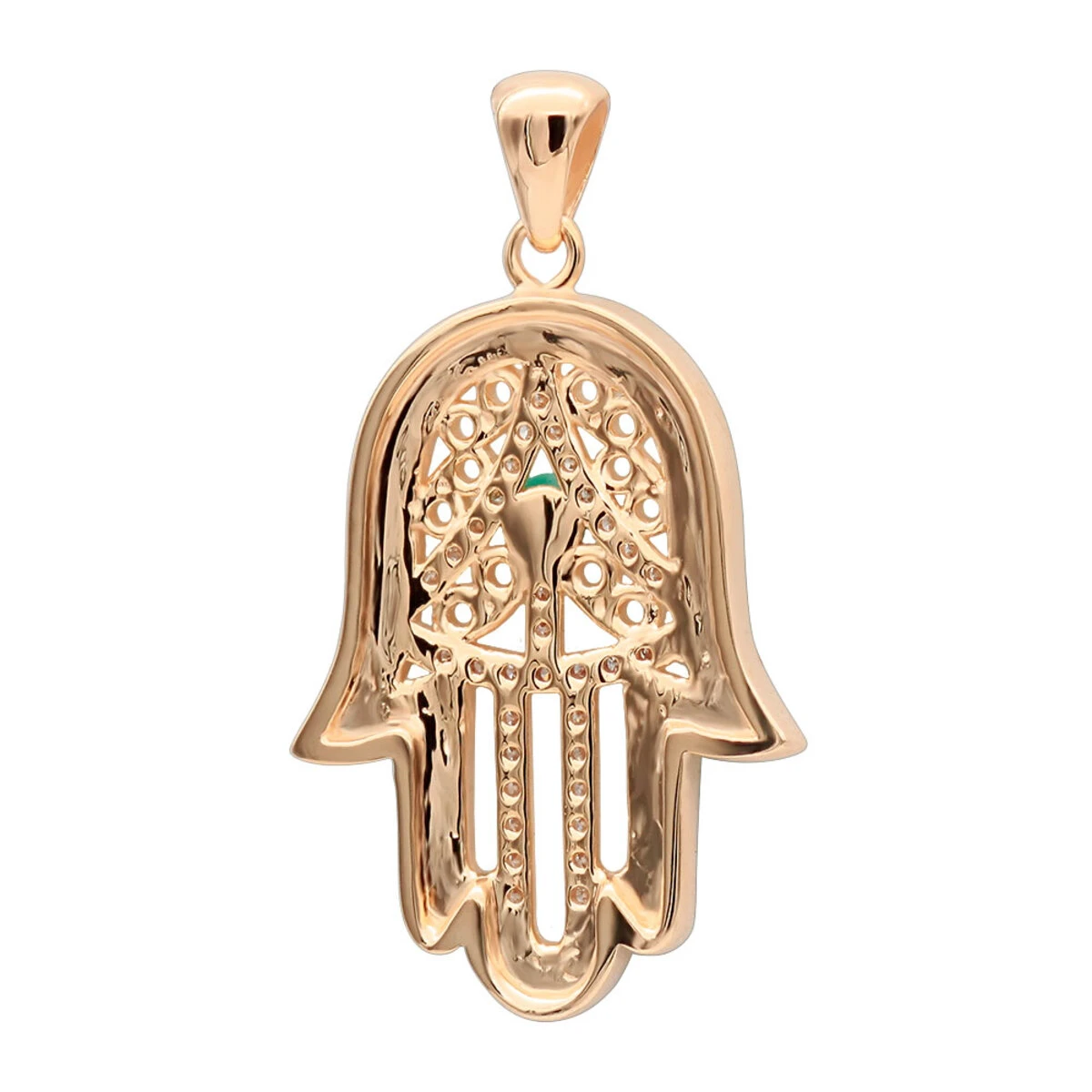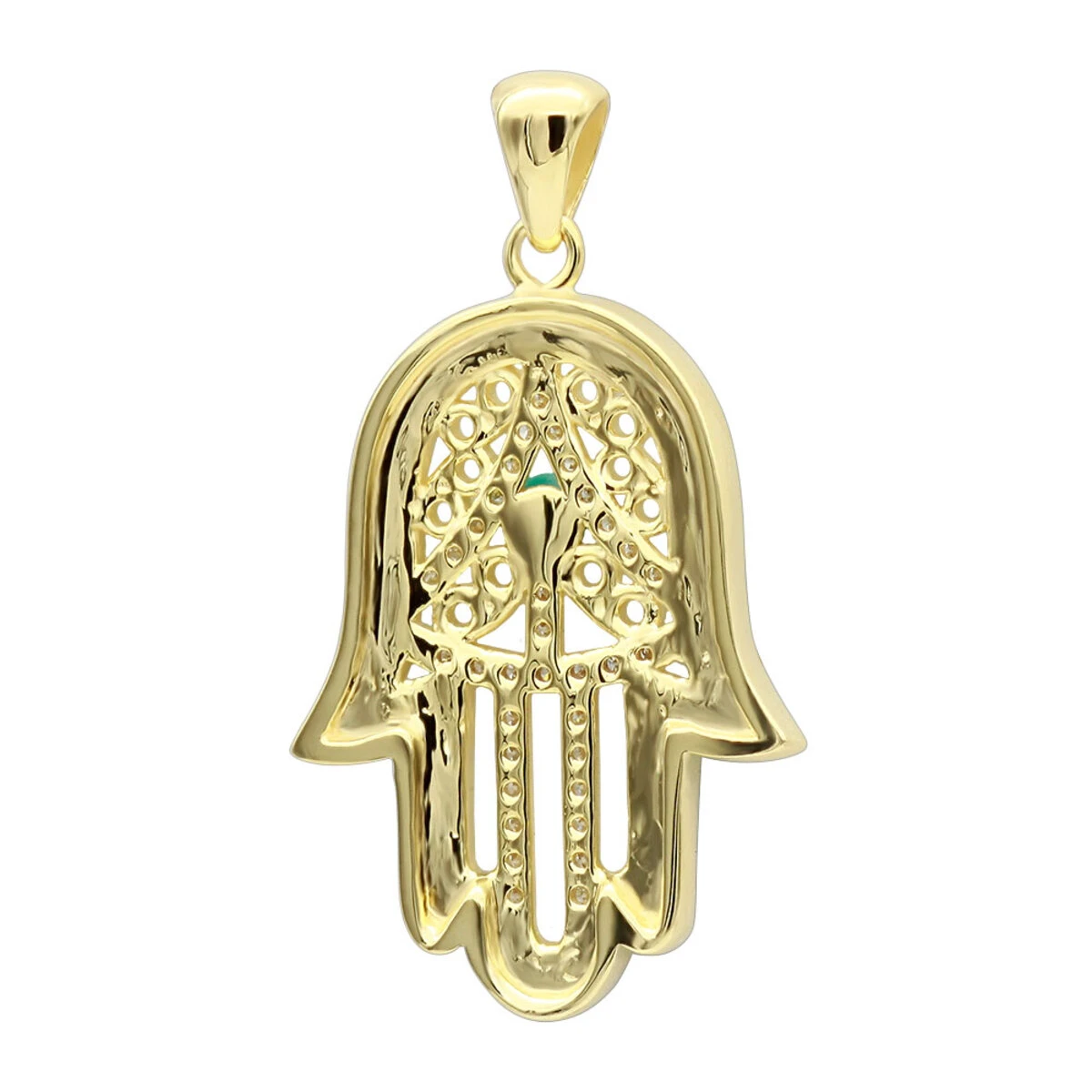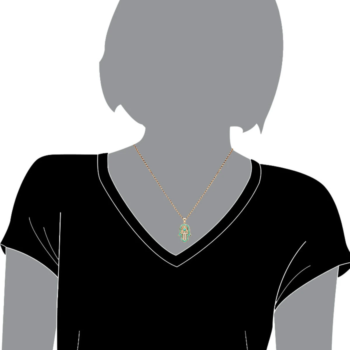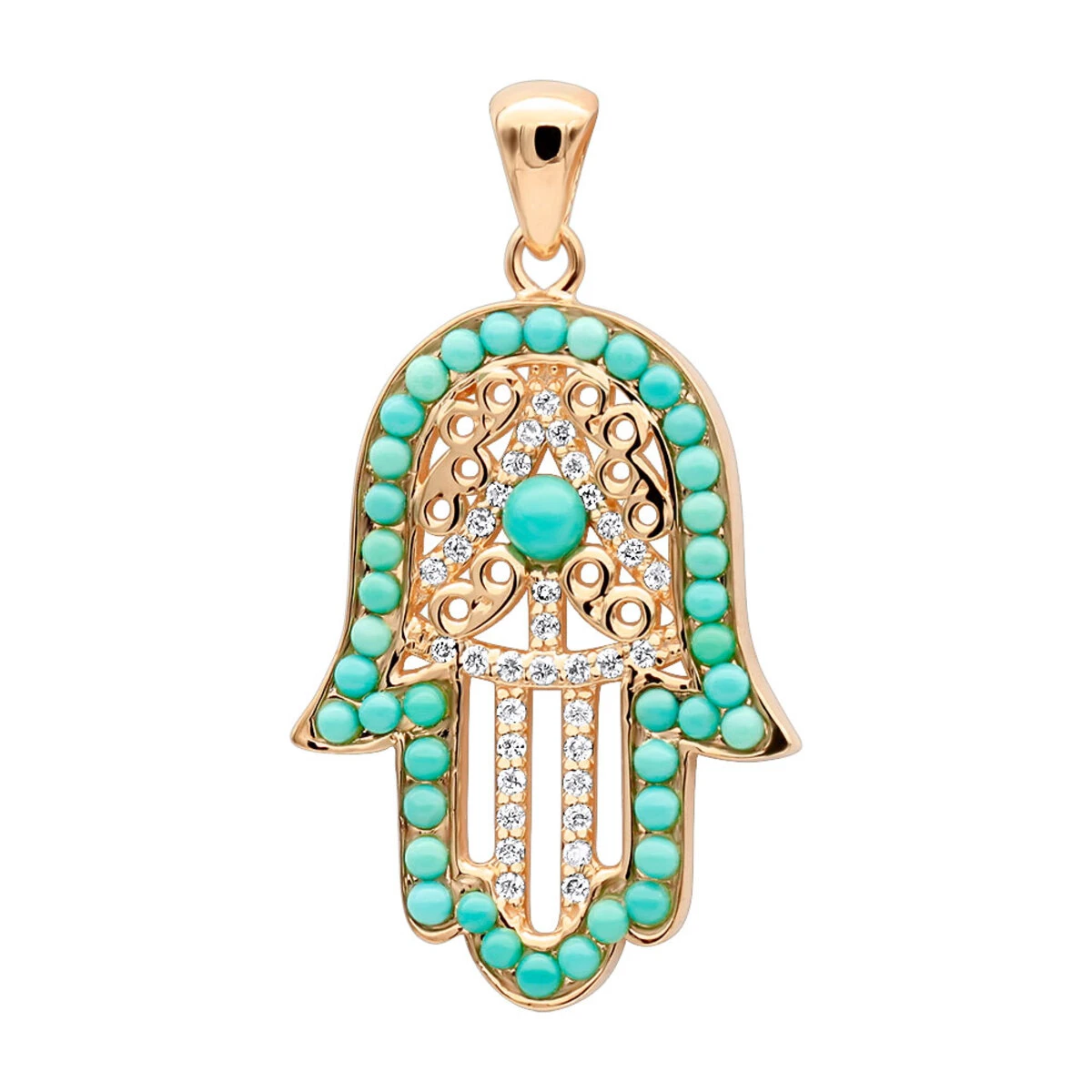 14K Yellow Gold Filigree Turquoise Diamond Hamsa Pendant 0.19ct