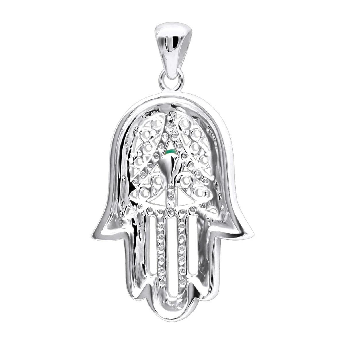 Small 14K White Gold Diamond Hamsa Hand Amulet Pendant 0.55ct