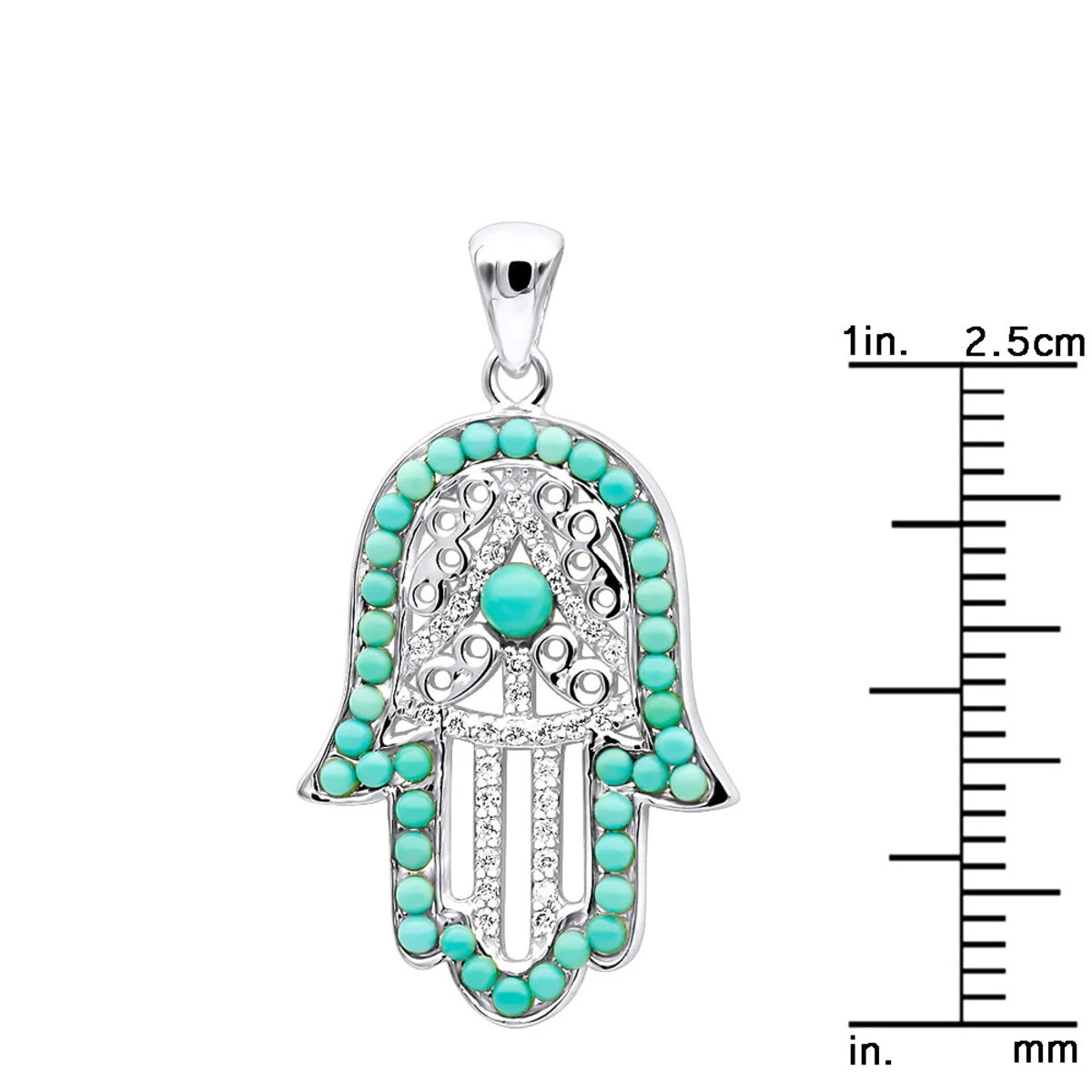 This 14K Filigree Turquoise Diamond Hamsa Pendant showcases 0.19 ctw of sparkling diamonds. Featuring an intricate design with turquoise stones and a highly polished gold finish, this fabulous diamond hamsa charm is available in 14K white, yellow and rose gold. Please note: the chain is for illustration purposes and must be purchased separately. You also can personalize this piece or check we’ve already made and create your own design.