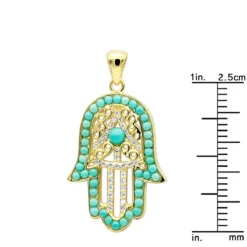 Be the first to review “14K Yellow Gold Filigree Turquoise Diamond Hamsa Pendant 0.19ct” Cancel reply
