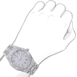 This eye-catching custom Iced Out Audemars Piguet Royal Oak Offshore Men’s Diamond Watch showcases 20 carats of dazzling high-quality round cut white diamonds masterfully set in its bezel, case and bracelet and features a unique iced-out look. Please note: this custom AP diamond watch for men is pre-owned in excellent condition and comes with a 5-year warranty from ItsHot.com.