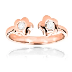 Beautiful Solid Gold Body Jewelry! This adjustable 14K Gold Diamond Toe Ring Flower showcases 0.07 ctw of 2 sparkling round diamonds, each bezel set in a lustrous gold frame. Featuring a highly polished gold finish and a double flower design, this exquisite gold and diamond toe ring from our solid gold body jewelry collection is available in 14K white, yellow and pink gold.