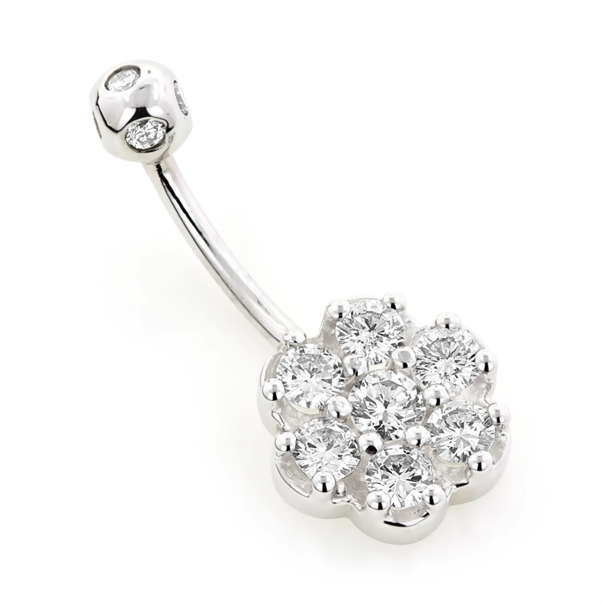 Belly Button Ring 14K White Gold With Flower Diamond 0.79