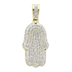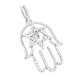 10K White Gold Diamond Hamsa Hand Pendant Fully Iced Out 1 Carat Charm