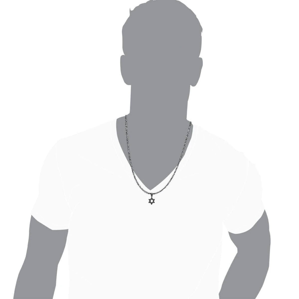 This Black Diamond Star of David Pendant in 14K gold showcases 1.44 carats of sparkling black diamonds, each masterfully prong set in lustrous 14K gold. Featuring a trendy design this diamond Star of David pendant is available in your choice of 14K white, yellow and rose gold; and can be plated with black rhodium for an all-black look. You also can personalize this piece or check we’ve already made and create your own design.