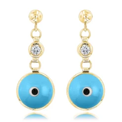 Good Luck Charms 14K White Gold Diamond Evil Eye Earrings 0.20ct 3/8 In (10mm) Blue