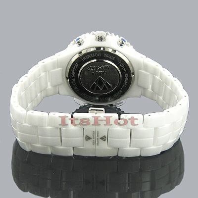 Fantastic Ceramic Watches! This Aqua Master Diamond Watch features 1.25 ctw of white diamonds set around the bezel, a stainless steel case, a white ceramic band, and a white dial with 3 subdials. This unisex diamond AquaMaster ceramic watch showcases a fine Swiss-made movement and is water-resistant.