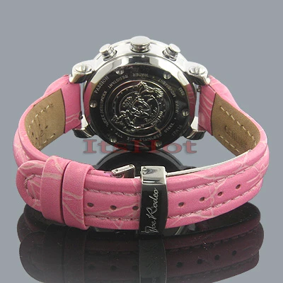 This 0.60-carat diamond ladies JOJO Joe Rodeo watch features a round, polished stainless steel case, scratch-free crystal glass, individually numbered and engraved stainless steel case-back. Fine Japan-made quartz movement with chronograph function, center second and date. Water-resistant to 100 meters. Comes with two interchangeable leather straps in different colors. The patented strap adjusts once for a perfect fit, and comes on and off with the press of a button. One full year manufacturer’s warranty.