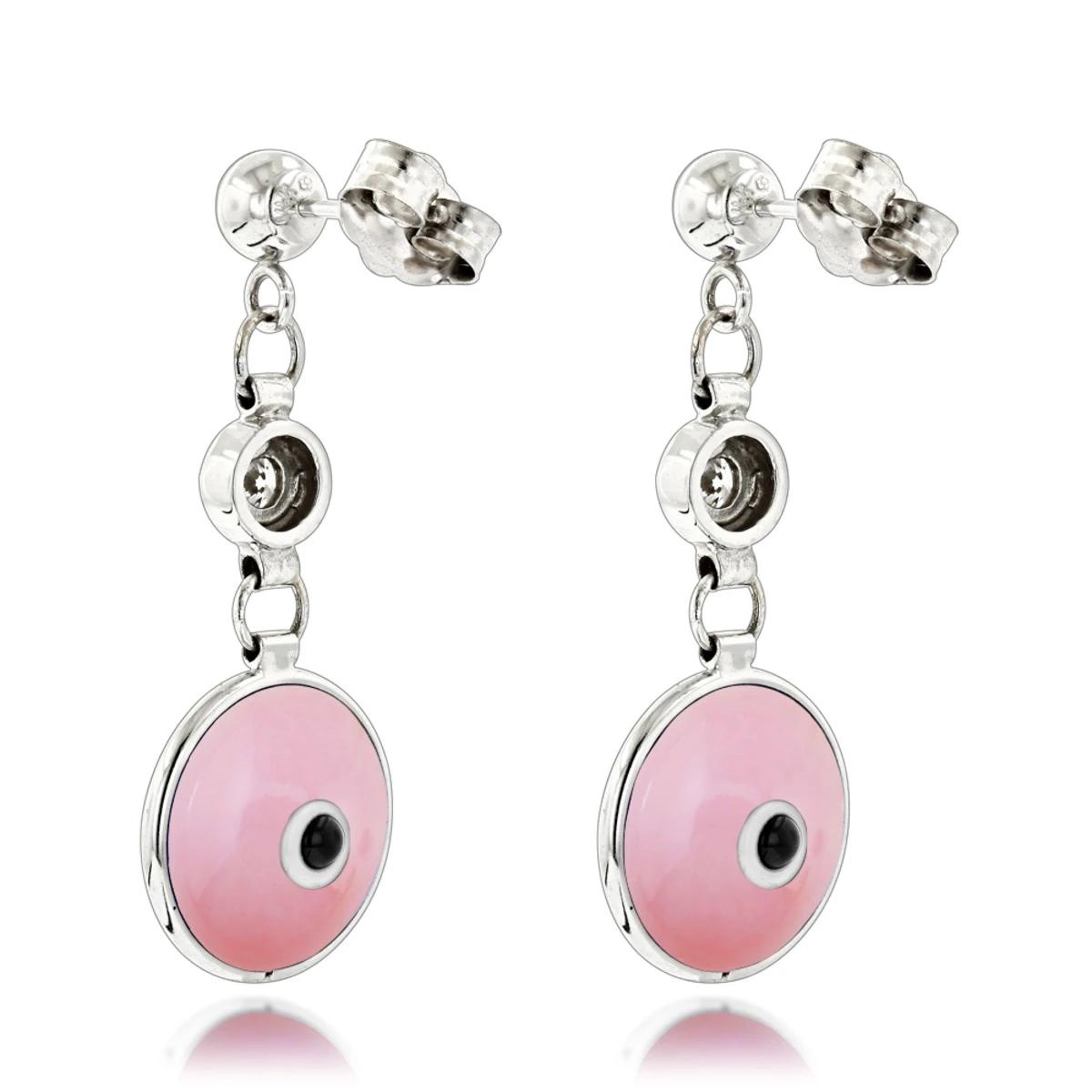 Good Luck Charms 14K White Gold Diamond Pink Evil Eye Earrings 0.20ct 3/8 In (10mm)