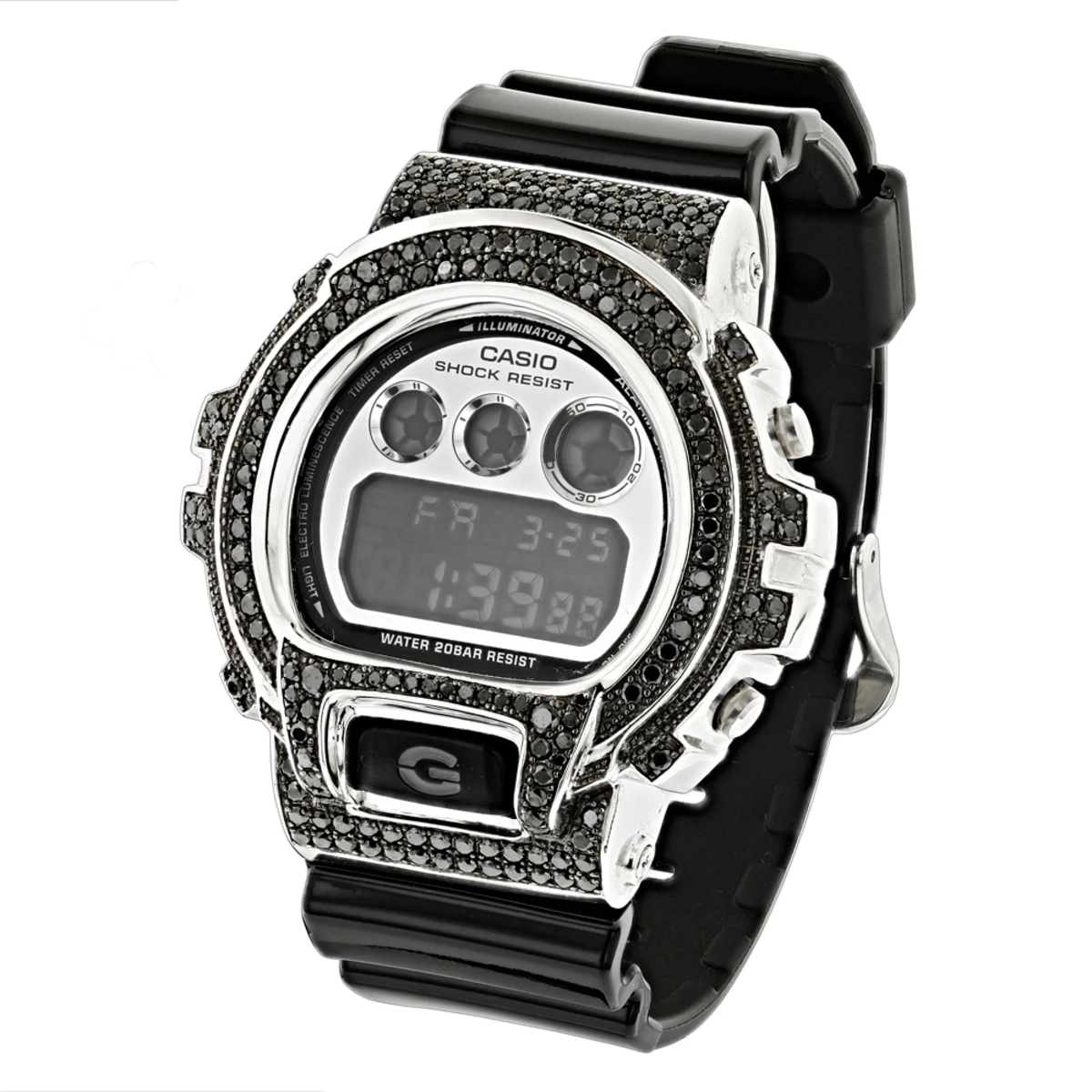 Hip Hop For Men: Casio G-Shock DW6900 Black Diamond Bezel Watch 4ct
