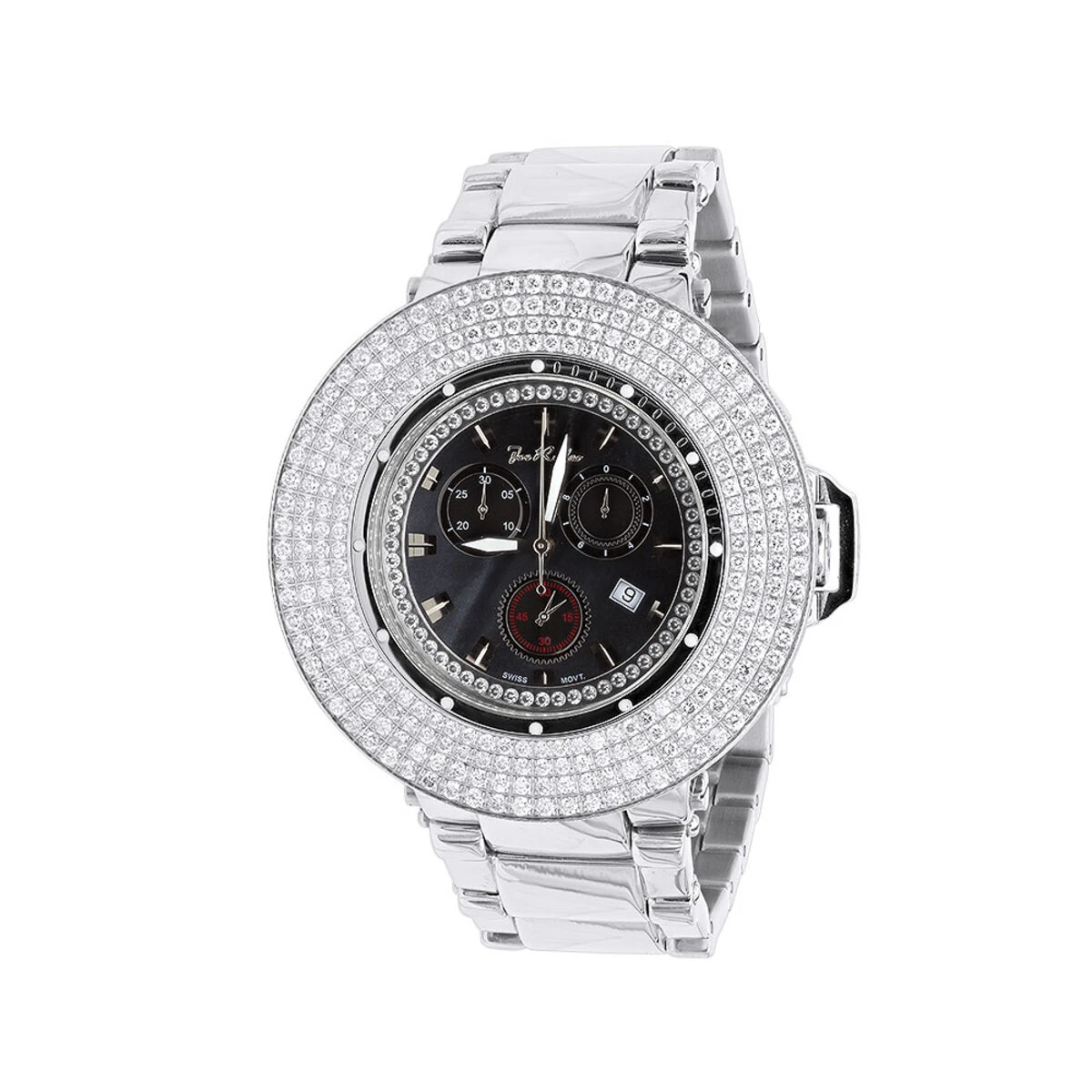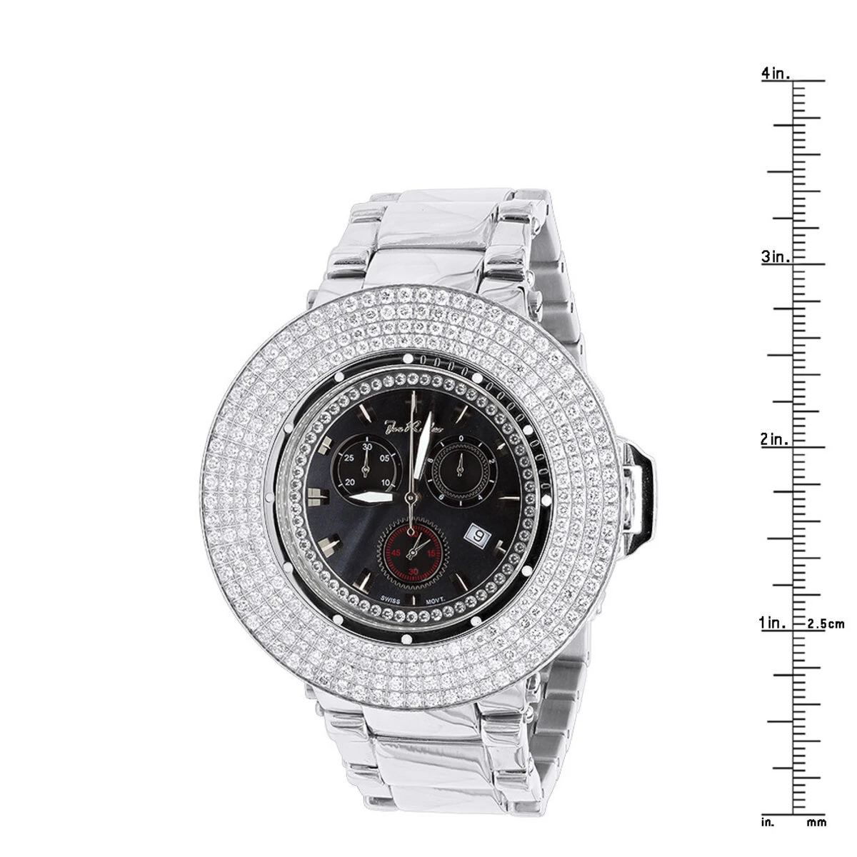 Unique Hop Hop Watches This exquisite Joe Rodeo Razor Men’s Watch showcases an oversized bezel with four rows of beautiful cut to perfection round sparkling diamonds, the black mother of pearl face features three chronograph subdials, a date display window at 4 oclock position and a row of glistening white stones around it. This men’s diamond wristwatch is equipped with a super accurate Swiss-made chronograph quartz movement. The case is water-resistant 100m (330 ft).