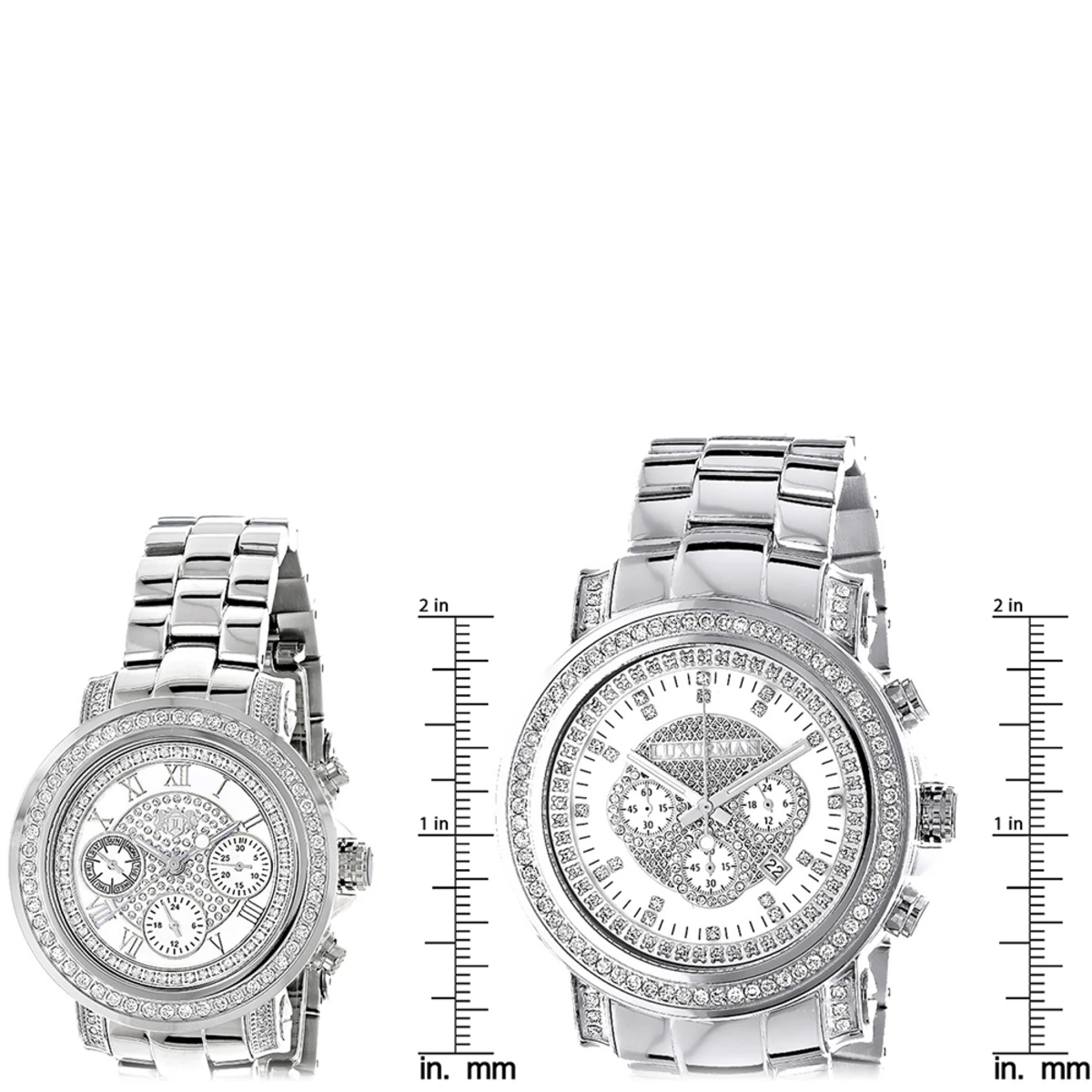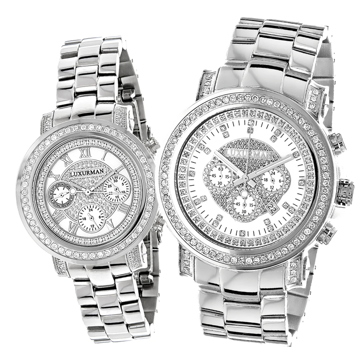 His And Hers Luxurman Oversized Diamond Watch Set 4.5ct
