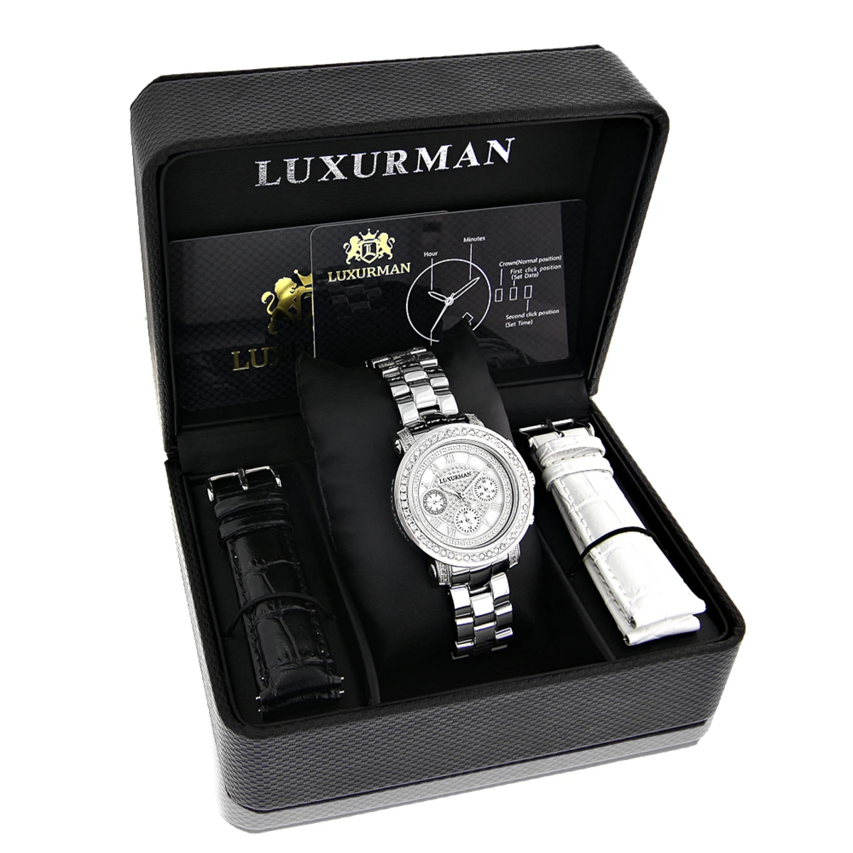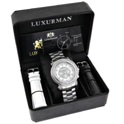 Men’s Diamond Fully Iced Out Watch 1.25ct Luxurman Liberty Swiss Mvt
