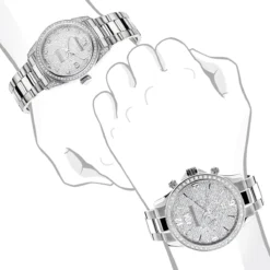His and Hers Watch collection: these two matching diamond watches stainless steel Luxurman Diamond Watch Set feature a paved dial in sparkling stones and a white gold plated stainless steel case and band. The Luxurman Diamond Tribeca Watch for Her showcases 1.5 carats of genuine diamonds and a date display window at a 3 o’clock position while the Diamond Watch for Him showcases 2 carats of sparkling round diamonds, both watches feature Swiss Quartz movement. Having a nice set of His and Hers watches is really sweet gesture, since you are going to think of each other as you look down at the watch when wearing it. The little reminders of the other person can help to make the relationship that much nicer since it tells the other person you care.