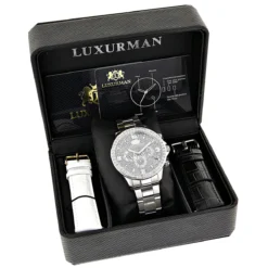 Luxurman Liberty Men’s Diamond Watch Black Leather Band 44mm Bezel 2ct Swiss