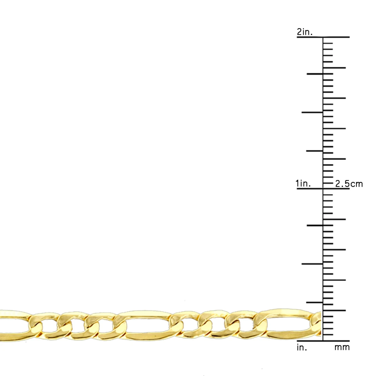 Affordable Hollow Chains: This 10k Gold Figaro Chain For Men & Women is 5.5mm wide, each Figaro necklace is quality made and is available at up to 50% off the retail price. Approximate weights for each length: 8.5in.-2.8gr., 18in.-5.4gr., 20in.-6gr., 24in.-7.1gr.