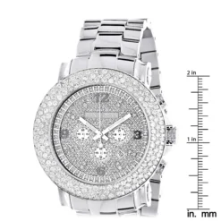 Iced Out Watches: This Large Diamond Bezel Watch for Men by Luxurman Escalade features an oversized stainless steel case, iced out face and 6.25 carats of round diamonds. The face of this LUXURMAN men’s diamond watch showcases three chronograph subdials with date and second-hand. This large diamond watch for men by Luxurman is a dazzling accessory and makes a luxurious addition to your watch collection, comes in a full retail packaging with two extra leather bands (black and white).