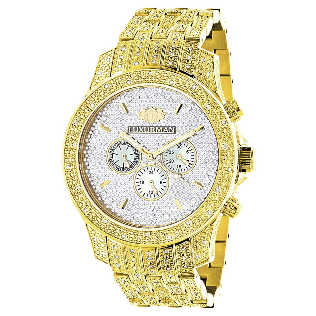 Iced Out Luxurman Men’s Diamond Watch 1.25ct Yellow Gold Tone