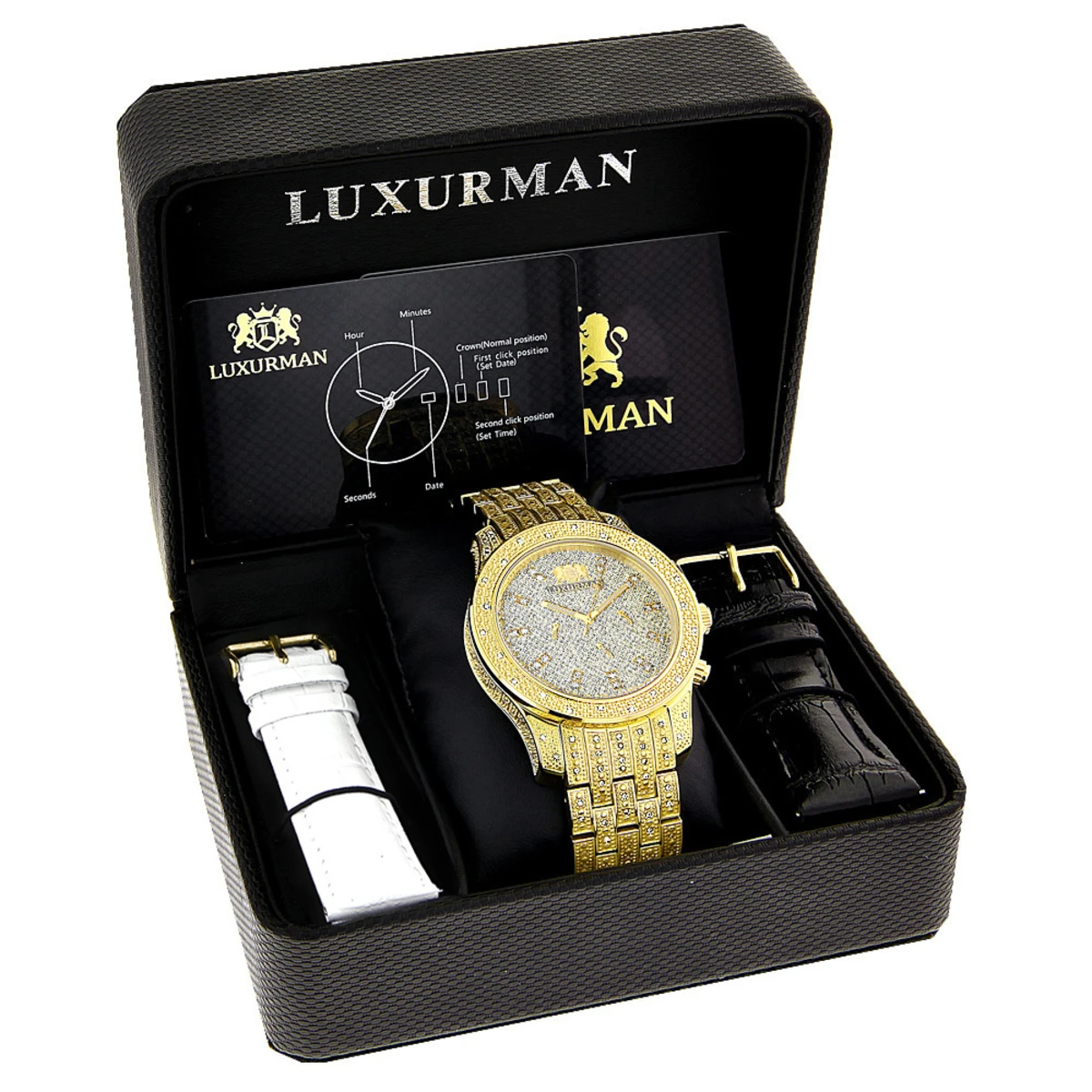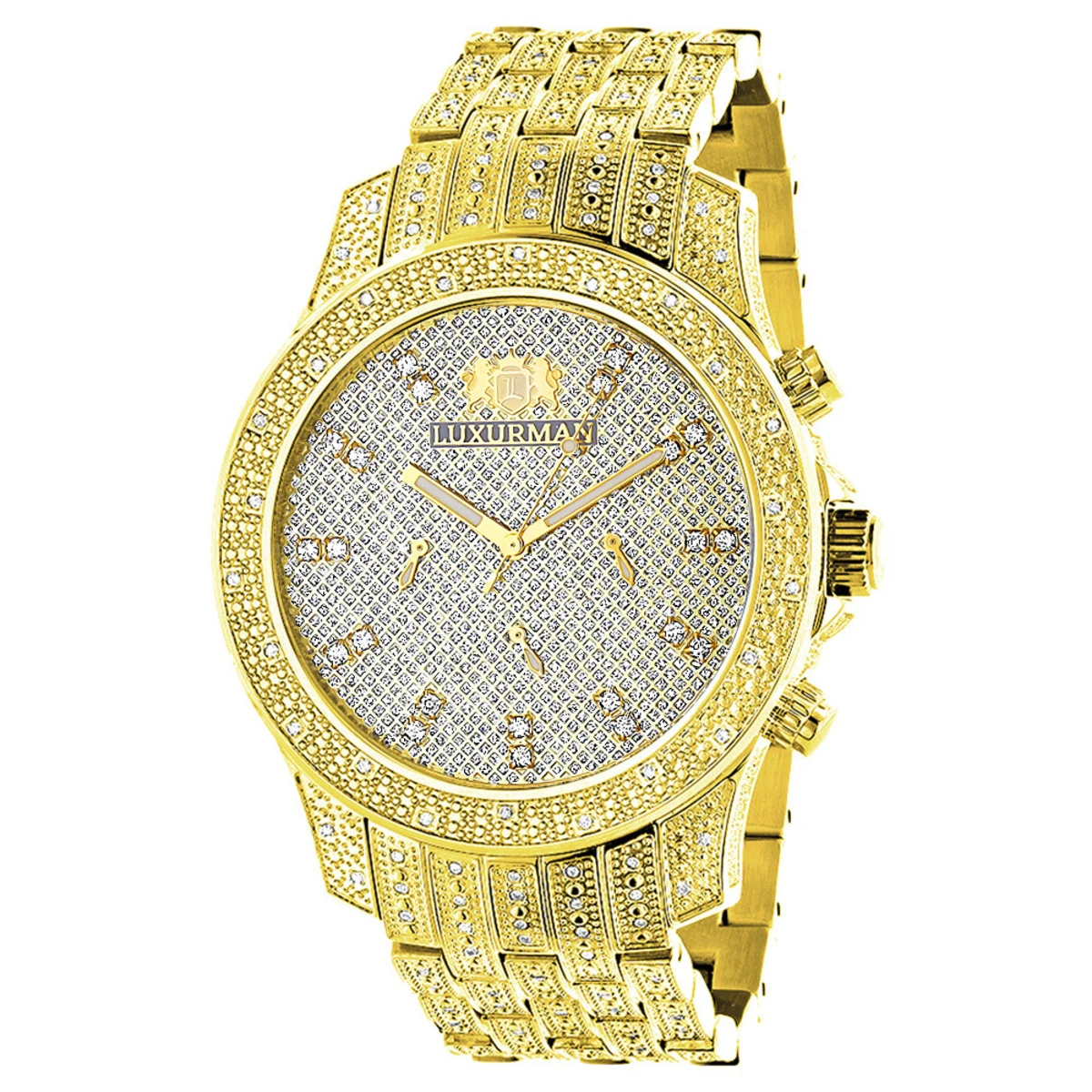 Iced Out Men’s Diamond Luxurman Watch 1.25ct Yellow Gold Tone