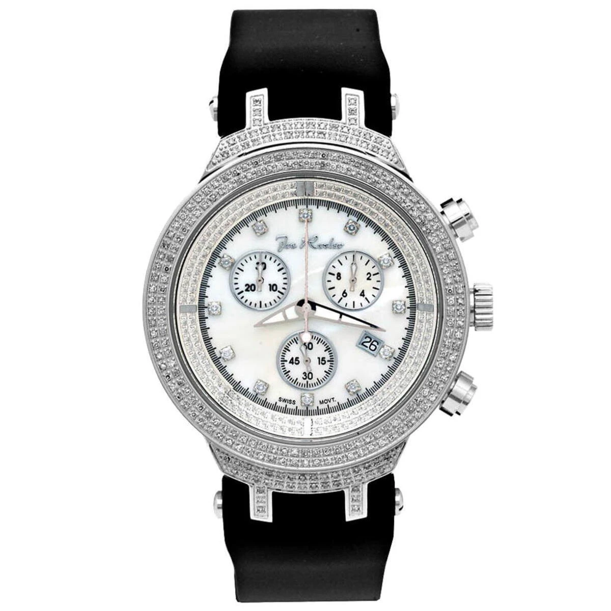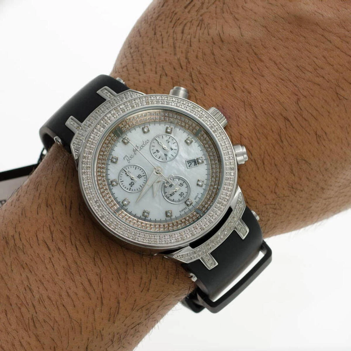 The Joe Rodeo Diamond JoJo Master Watch 2.20ct is a luxurious timepiece that is sure to turn heads. This stunning watch features a 46mm stainless steel case with a polished finish and a black dial with a chronograph, date indicator, and second hand-indicator. The bezel is set with 2.20ct of round-cut diamonds, adding a touch of sparkle and elegance to the watch. The watch is powered by a Swiss-quartz movement, ensuring accuracy and reliability. The watch is also water-resistant up to 50 meters, making it perfect for everyday wear.The Joe Rodeo Diamond JoJo Master Watch 2.20ct is a luxurious timepiece that is sure to make a statement. The watch features a sleek and modern design that is sure to stand out. The black dial is accented with silver-tone hands and markers, making it easy to read the time. The bezel is set with 2.20ct of round-cut diamonds, adding a touch of sparkle and elegance to the watch. The watch is powered by a Swiss-quartz movement, ensuring accuracy and reliability. The watch is also water-resistant up to 50 meters, making it perfect for everyday wear.The Joe Rodeo Diamond JoJo Master Watch 2.20ct is the perfect accessory for any man who wants to make a statement. The watch features a sleek and modern design that is sure to stand out. The black dial is accented with silver-tone hands and markers, making it easy to read the time. The bezel is set with 2.20ct of round-cut diamonds, adding a touch of sparkle and elegance to the watch. The watch is powered by a Swiss-quartz movement, ensuring accuracy and reliability. The watch is also water-resistant up to 50 meters, making it perfect for everyday wear.