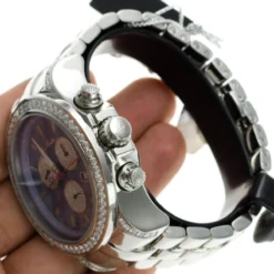 The Joe Rodeo Diamond Men’s Master Pilot 7.20ct Watch is a luxurious timepiece that will make a statement wherever you go. This watch is crafted from stainless steel and features a 49mm case diameter. The bezel is set with 7.20 carats of diamonds, giving it a dazzling sparkle. The chronograph, date indicator, and second hand-indicator functions make this watch a practical and stylish accessory.The Swiss-Quartz movement ensures accuracy and reliability, while the 10 ATM water resistance allows you to wear it in any weather. The dial is black with a sunray finish and features three sub-dials, a date window, and a tachymeter scale. The hands and hour markers are luminous, making it easy to read in any light. The stainless steel bracelet is comfortable and secure, and the deployment clasp ensures that it stays in place.The Joe Rodeo Diamond Men’s Master Pilot 7.20ct Watch is a luxurious timepiece that will make a statement wherever you go. With its sophisticated design and reliable performance, this watch is sure to become a favorite accessory. Whether you’re looking for a special gift or a timeless piece for yourself, this watch is sure to impress.