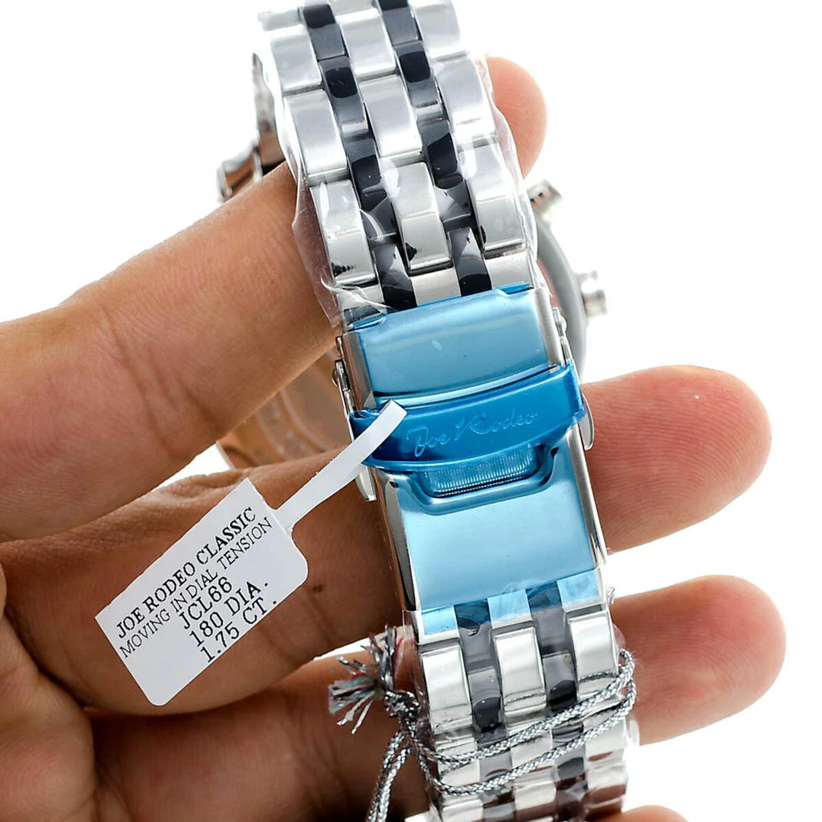 The Joe Rodeo Classic 1.75.ct JCL41(W) Watch is the perfect timepiece for the modern man. This sophisticated watch features a stainless steel case with a diameter of 45mm, making it the perfect size for any wrist. The watch is powered by a Swiss-Quartz movement and is water resistant up to 100 meters, making it suitable for swimming and other water activities. The watch also features a chronograph, date indicator, and second hand-indicator, making it a great choice for those who need to keep track of time.The watch is finished with a luxurious 1.75 carat diamond bezel, giving it a timeless and elegant look. The diamonds are set in a pave setting, making them sparkle and shine in the light. The watch also features a stainless steel bracelet with a deployment clasp, making it easy to put on and take off.The Joe Rodeo Classic 1.75.ct JCL41(W) Watch is the perfect choice for the modern man who wants to make a statement. With its sophisticated design and luxurious diamond bezel, this watch is sure to turn heads. Whether you’re looking for a watch to wear to the office or a special occasion, this watch is sure to make a statement.