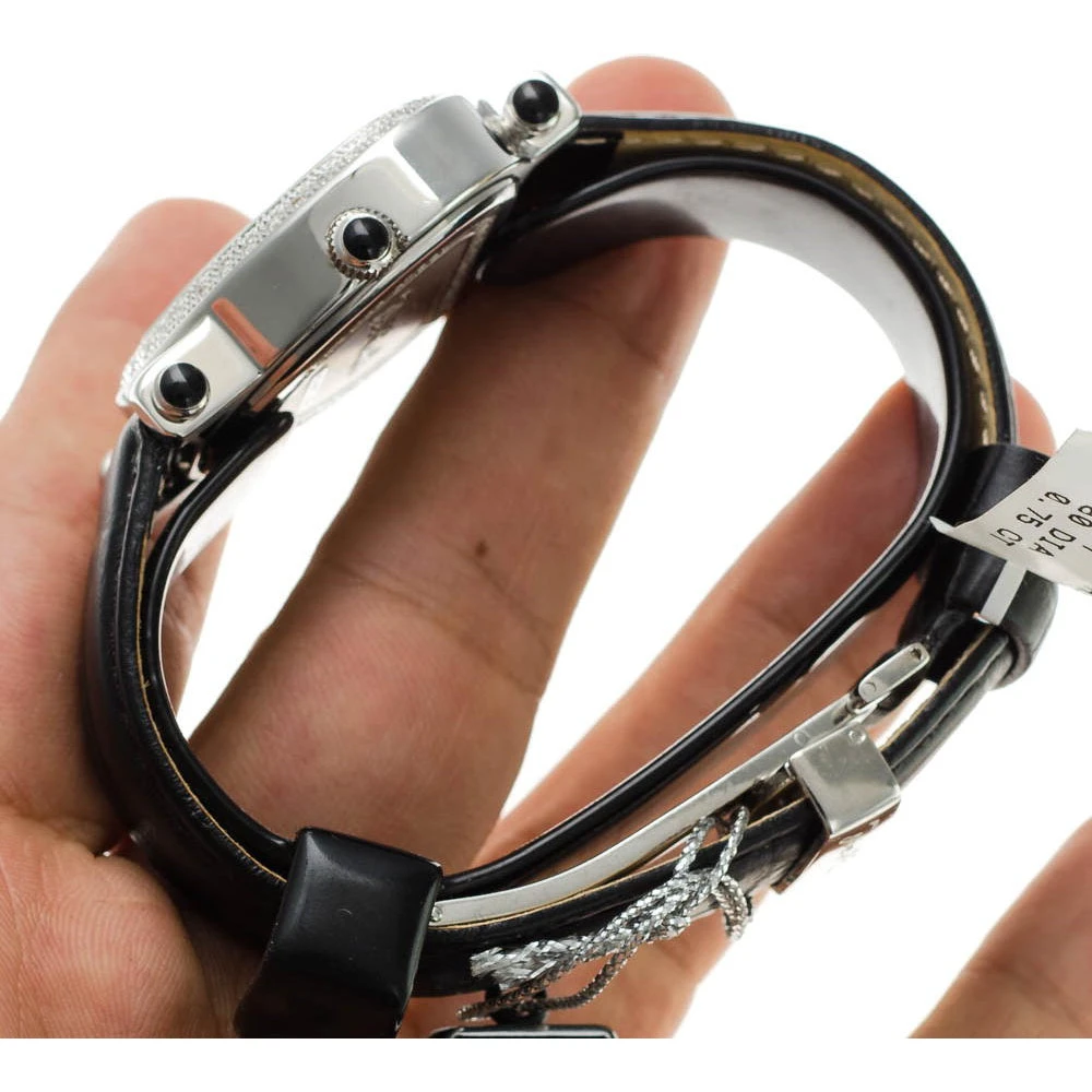 Luxurman Liberty Men’s Diamond Watch Black Leather Band 44mm Bezel 2ct Swiss