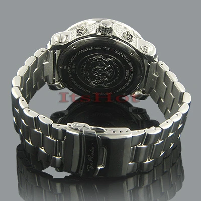 Luxurious Joe Rodeo Watches! This JoJo Junior Black Diamond Watch showcases 6.75 ctw of sparkling fancy black and white diamonds on the bezel, sides and lugs of its silver tone stainless steel case. This Joe Rodeo Junior watch features a white mother of pearl face with three chronograph subdials and a date display at 4 o’clock. This fantastic men’s diamond watch houses a Swiss-made chronograph quartz movement, and is conveniently water-resistant up to 100 m (330 ft).