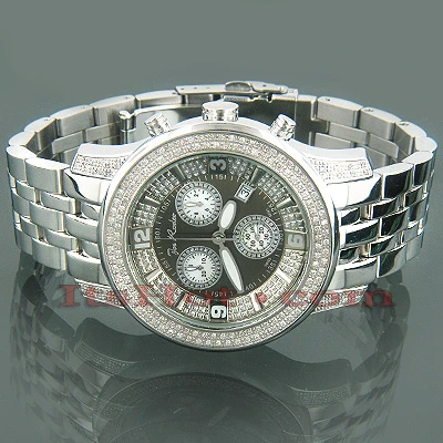 This Men’s JoJo Joe Rodeo Diamond Watch (Tyler) features 1.50 carats of genuine diamonds masterfully set on the bezel and lugs of its silver stainless steel case. The stainless steel face has three mother of pearl chronograph subdials and date display window at 4 o’clock position. This Joe Rodeo watches collection piece comes with a fine Swiss-made quartz movement with chronograph function, center second and date. Water-resistant to 100 meters. This JoJo diamond watch by Joe Rodeo comes with two interchangeable straps in different colors. The patented strap adjusts once for a perfect fit, and comes on and off with the press of a button.