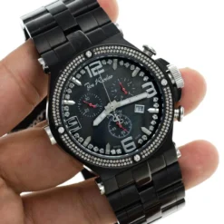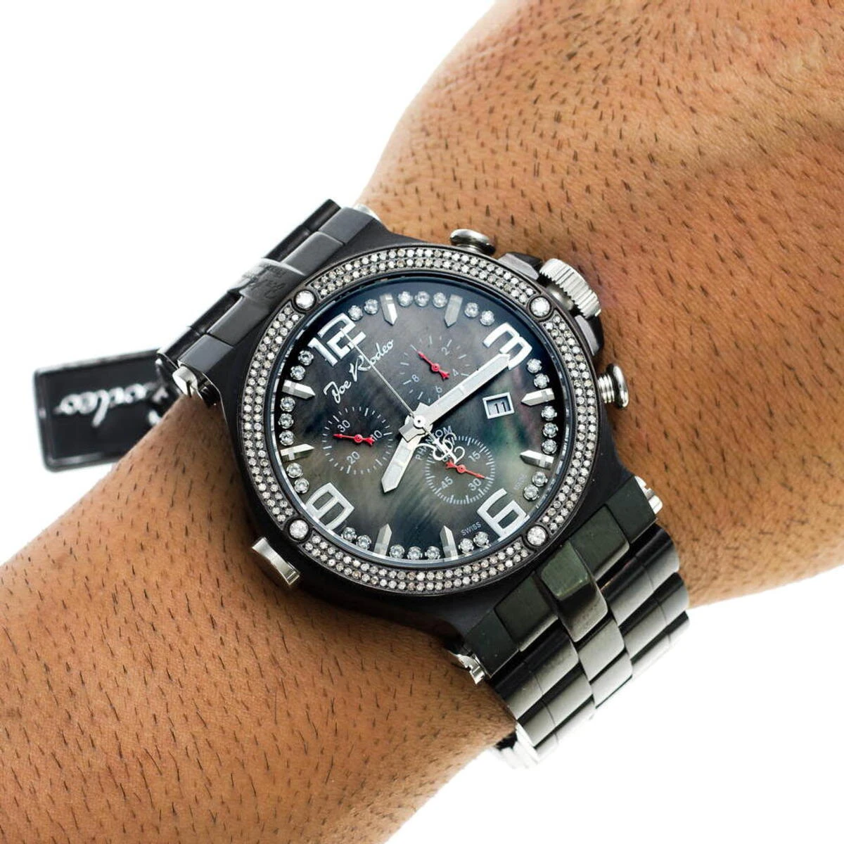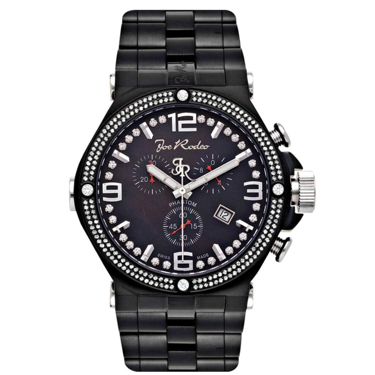 This JoJo Joe Rodeo Phantom Men’s Diamond Watch features 2.25 carats of round diamonds, a black stainless steel case, scratch-free crystal glass and black stainless steel band. This men’s diamond watch has two rows of white sparkling diamonds around the bezel. This watch by Joe Rodeo also features a black Stainless Steel dial with Silver tone hour markers and a row of sparkling white stones around it. Super accurate Swiss-made quartz movement with chronograph function will keep the time for you. Water-resistant 100m (330 ft).