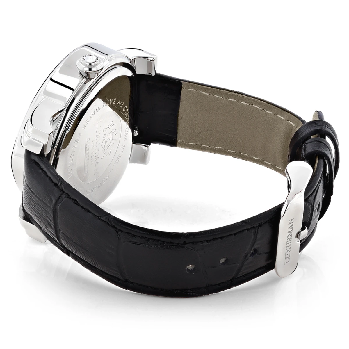 This Luxurman Ladies Diamond Watch with Blue Heart dial is uniquely designed, including 0.3 carats of round diamonds surrounding a heart-shaped dial, a polished silver stainless steel case, a blue Mother Of Pearl face paved in sparkling stones and a black genuine leather band. This women’s diamond watch showcases a fine Japan-made quartz movement and is water-resistant to 30 m (110 ft). This heart shaped diamond watch is a perfect present for any occasion.