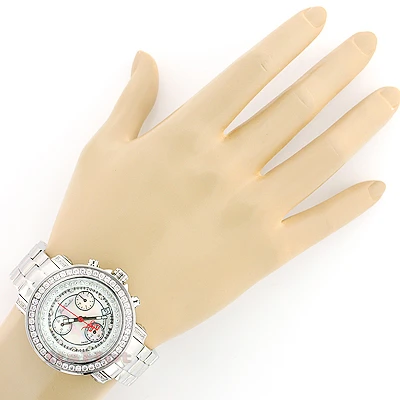 This ladies Joe Rodeo JoJo diamond watch features 2.00 carats of diamonds, a polished rounded Silver stainless steel case, scratch-free crystal glass, individually numbered and engraved stainless steel case-back. White Mother-of Pearl dial (available with black, blue, white and pink mother of pearl dials). Fine Swiss-made quartz movement with chronograph function. Water resistant to 100 m (330 ft). This luxurious women’s diamond watch by Joe Rodeo comes with two interchangeable straps in different colors. The patented strap adjusts once for a perfect fit, and comes on and off with the press of a button.
