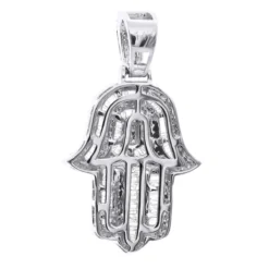 From our Jewish jewelry collection: Inspired by the timeless palm-shaped amulet, this 2 Carat Diamond Hamsa Hand Pendant in solid 14K Gold by Luxurman is a balance of tradition and industrial modernity. Glowing round and baguette cut diamonds decorate this beautiful pendant and it’s bail. The pendant is quite large being 7/8in (21mm) wide and 1 9/16in (39mm) long (with the bail), weighs approximately 9 grams and will perfectly fit both ladies and gentlemen. It is available in 14K white, yellow or rose gold of your choice. Wear this luxurious diamond pendant paired with one of ItsHot.com chains! You also can personalize this piece or check we’ve already made and create your own design.