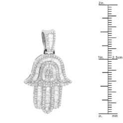 10K White Gold Diamond Hamsa Hand Pendant Fully Iced Out 1 Carat Charm