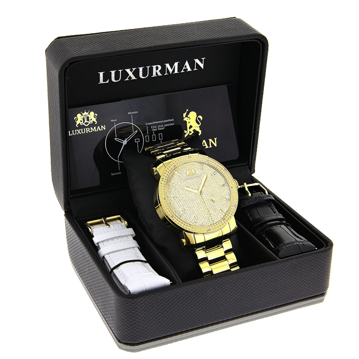 Large Luxurman Men’s Diamond Watch 0.12ct Yellow Gold Plated Phantom