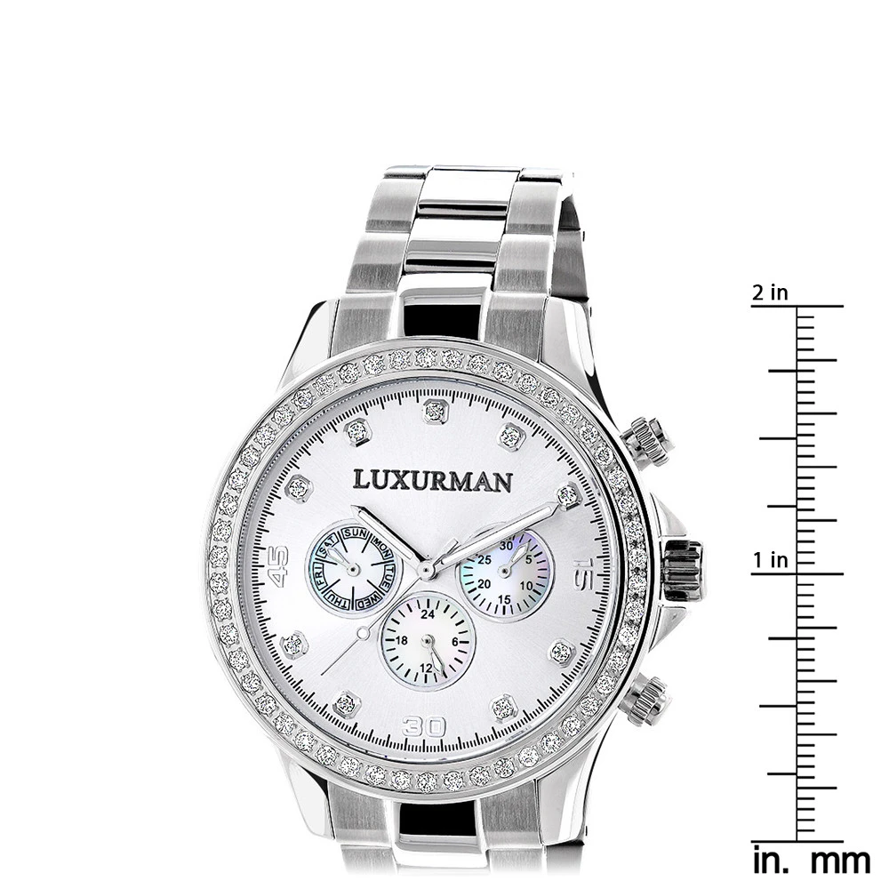 Matching His And Hers Luxurman Oversized Diamond Watch Set 0.55ct