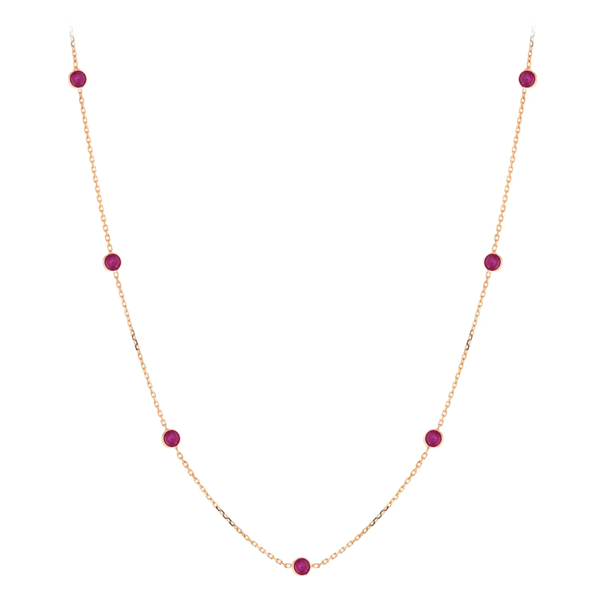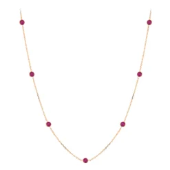 This Luxurman 14K Gold Ladies Chain Necklace with Rubies by the Yard is 16 inches long and showcases 1.6 carats of fabulous bezel-set red rubies. Featuring a classy design, this ladies ruby by the yard necklace is available in 14K white, yellow and rose gold, and can be customized in any length with different color gemstones and diamonds. Makes a fabulous gift!