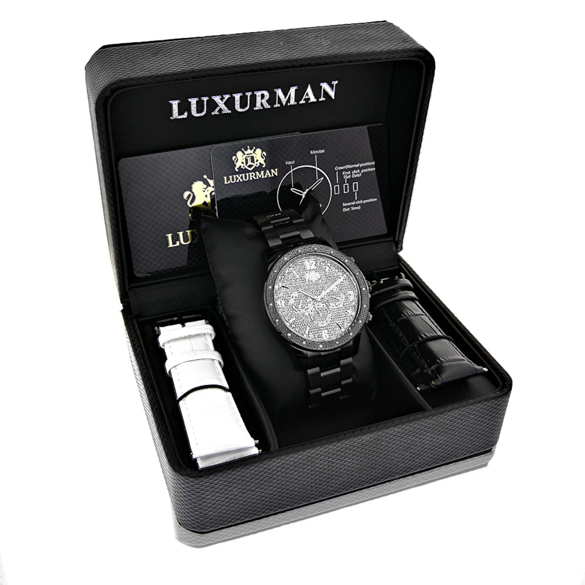 Luxurman Liberty Black Diamond Watch For Men 1/4ct