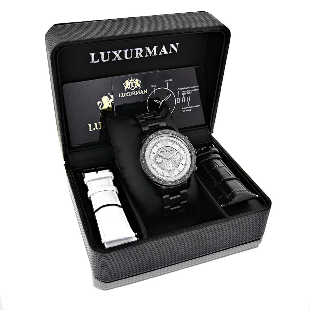Luxurman Liberty Men’s Real Diamond Watch 0.2ct Black