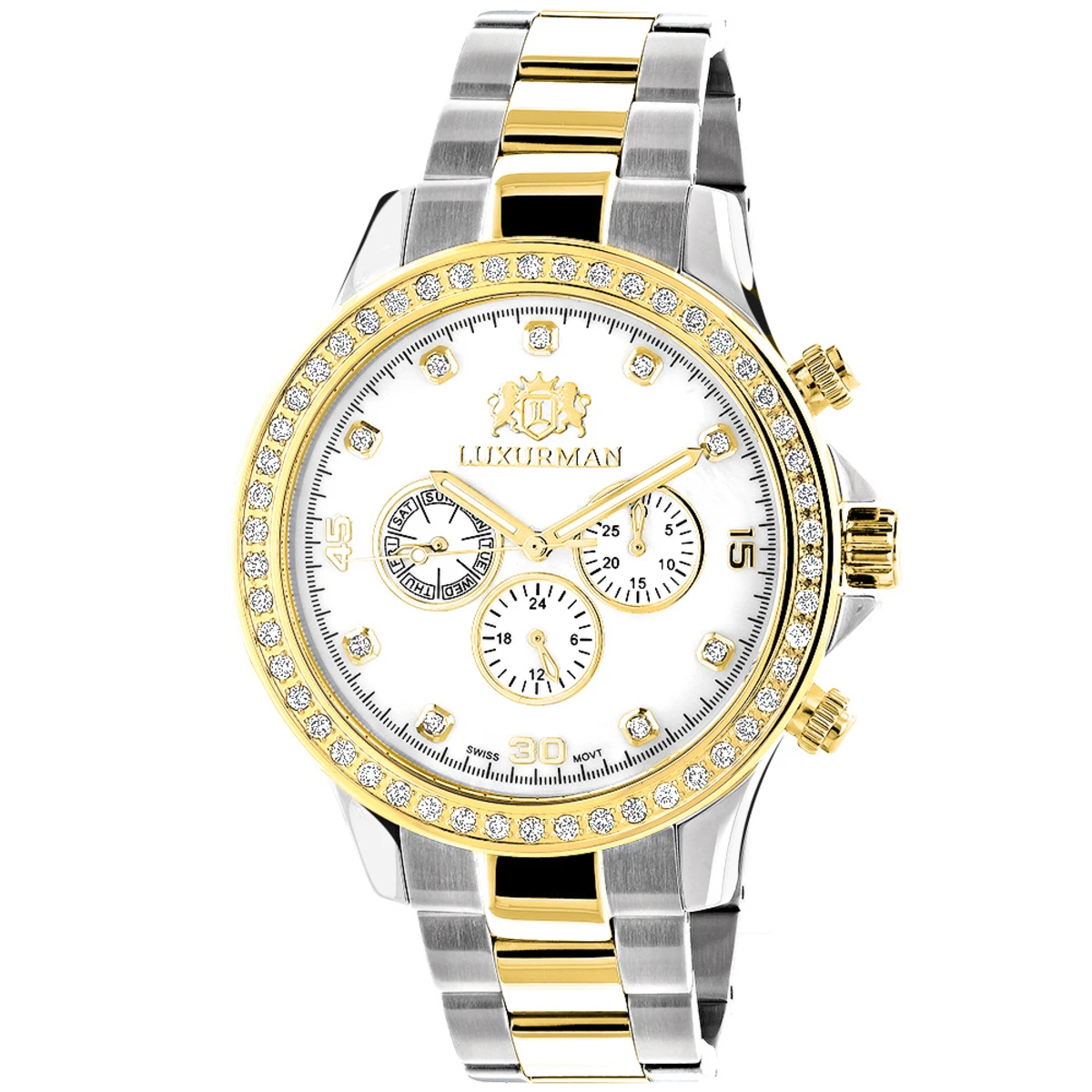 Luxurman Men’s Diamond Yellow White Gold Plated Swiss Quartz Liberty Watch