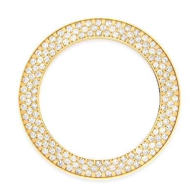 This Luxury Diamond Watch Bezel for Joe Rodeo Junior – Yellow Gold Plated – features 6 carats of dazzling round diamonds expertly set in a gold tone stainless steel frame. This diamond watch bezel is a perfect upgrade or a bezel replacement for your Joe Rodeo Junior watch. This is a listing for a diamond bezel only, watch must be purchased separately.