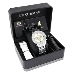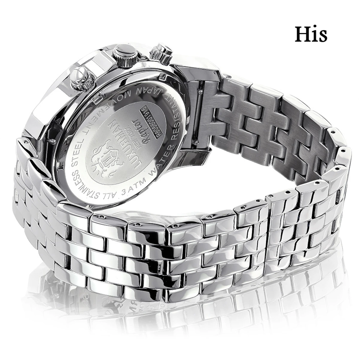 The Luxurman Tribeca Diamond Watch for Her features 1.5 carats of genuine diamonds, this ladies diamond watch has Swiss movement, white mother of pearl dial and a date display window at a 3 o’clock position. The Luxurman Raptor Diamond Watch for Him showcases 2.5 carats of genuine diamonds, white mother of pearl face with three subdials, a white gold plated stainless steel case and stainless steel band. Giving your partner a Luxurman Diamond Watch will surely garner their attention and ensure that you are both at the leading edge of fashion as you go out together. If not now, then when?
