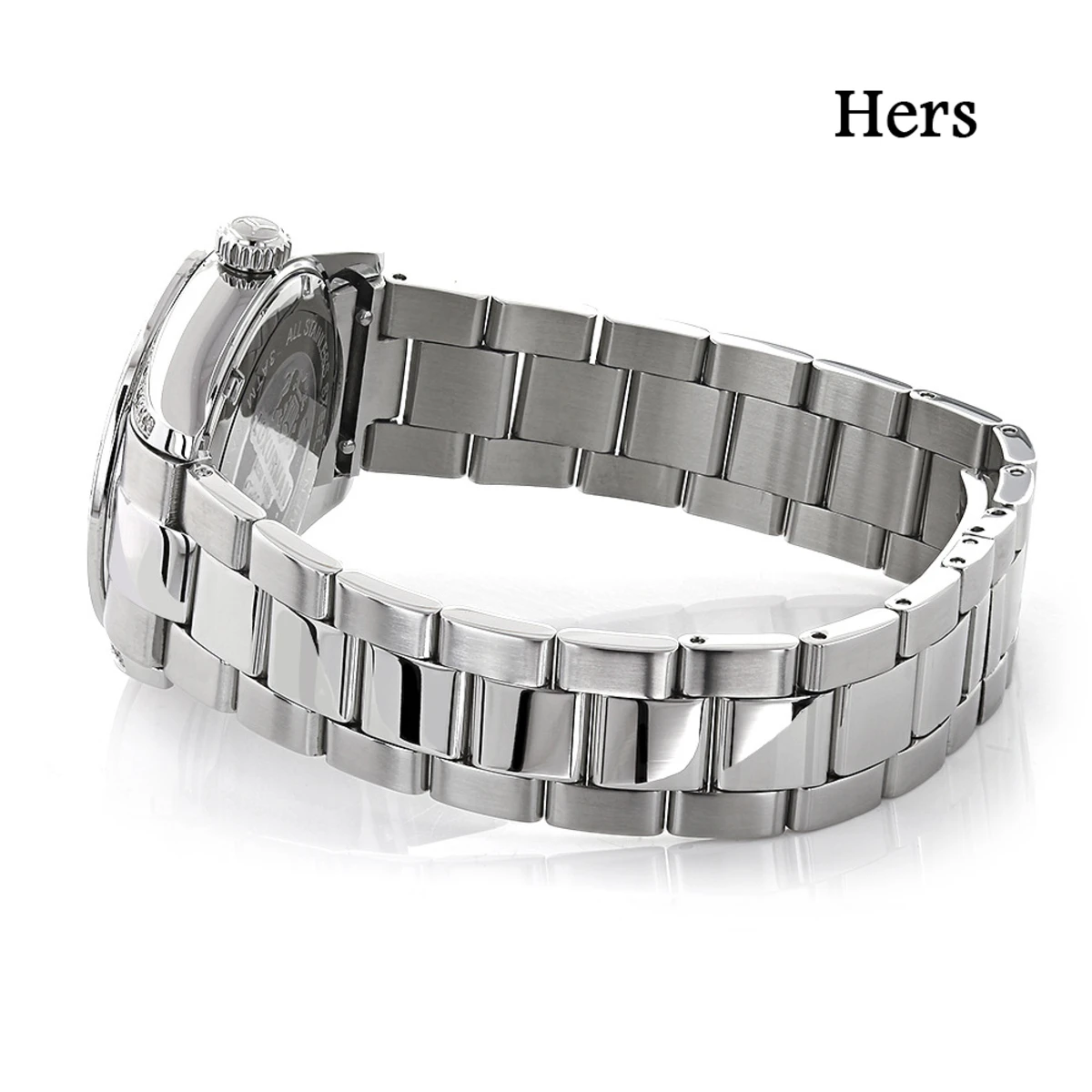 Matching His and Hers Watches: Luxurman Diamond Watch Set with white MOP dials, gold plated. We are proud to present you these Classic Diamond Watches by Luxurman! These two matching diamond watches gold featuring two tone white and yellow gold plated design, white gold plated stainless steel case and band. Both of these Luxurman diamond watches are conveniently water-resistant to 3 ATM and come with a 5 year manufacturer’s warranty.