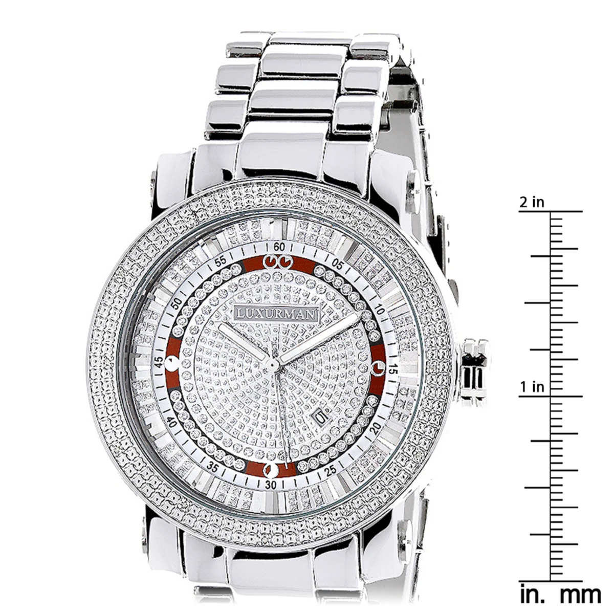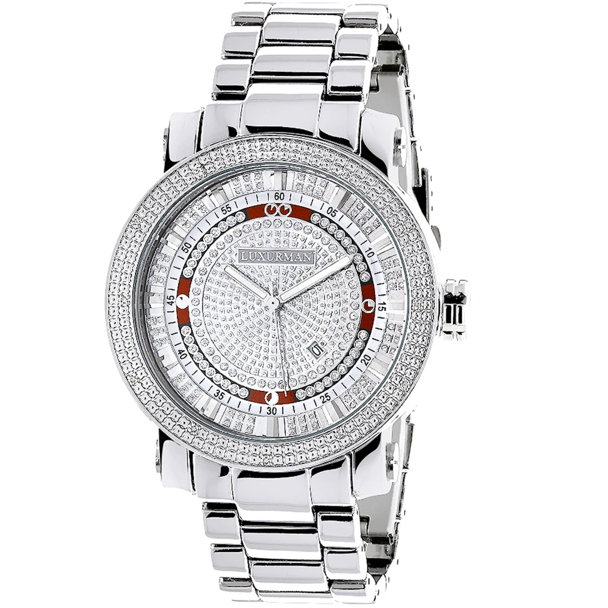 Designer Luxurman Watches! This Luxurman Men’s Diamond Watch features 0.12 carats of genuine diamonds. The face of this LUXURMAN Diamond Watch is paved in white sparkling stones and has a date display at 4 o’clock. This men’s diamond watch by LUXURMAN is water-resistant to 30 m (110 ft), and makes a great gift for any occasion.