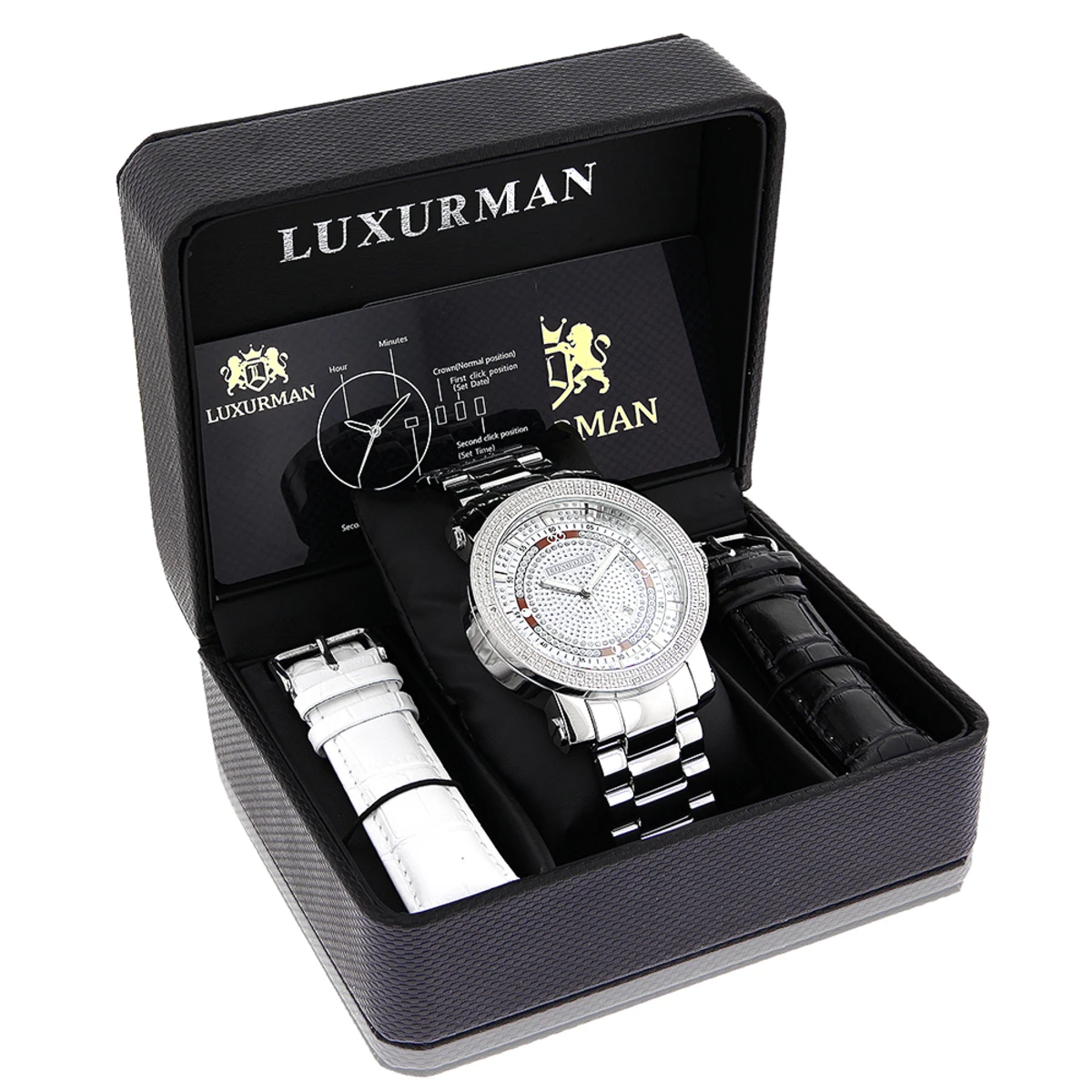 Men’s Diamond Fully Iced Out Watch 1.25ct Luxurman Liberty Swiss Mvt