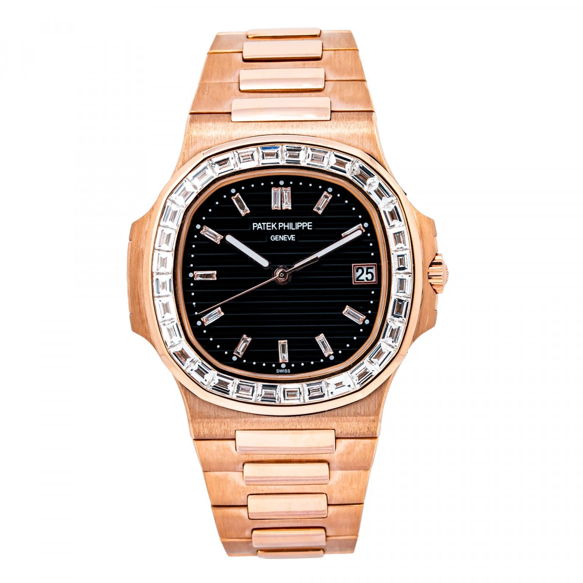 The Patek Philippe Nautilus 40mm Black Dial Men’s Diamond Watch is a stunning timepiece that is sure to make a statement. This watch features a stainless steel case with a rose gold bezel set with white diamonds. The black dial is adorned with diamond markers and features a date window at 3 o’clock. The watch is powered by an automatic movement and is water resistant up to 100 meters. The bracelet is made of rose gold and is adjustable for a comfortable fit. This watch is perfect for any occasion and is sure to be a conversation starter. With its classic design and luxurious materials, this watch is sure to be a timeless addition to any wardrobe. Whether you are looking for a dress watch or a casual timepiece, the Patek Philippe Nautilus 40mm Black Dial Men’s Diamond Watch is sure to impress.